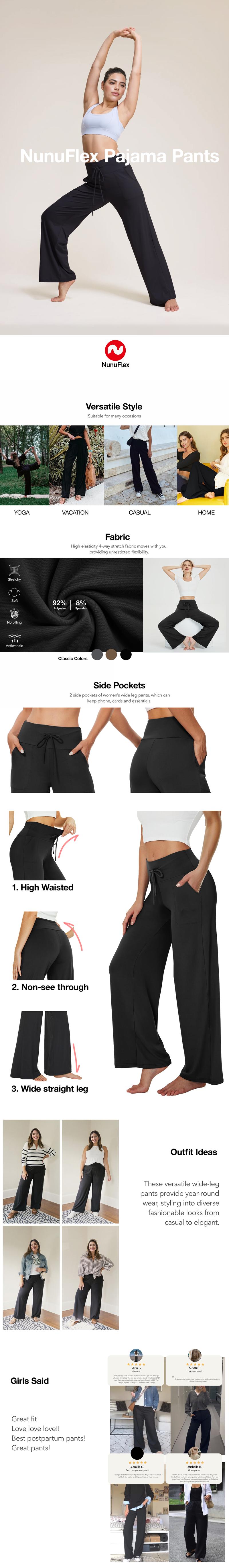 بنطلون بيجاما نسائي من Nunuflex مكون من 3 قطع بقصة واسعة من القماش الناعم المرن عالي الخصر مع جيوب جانبية عميقة ورباط مرن لممارسة تمارين اليوجا وارتداء الملابس المريحة